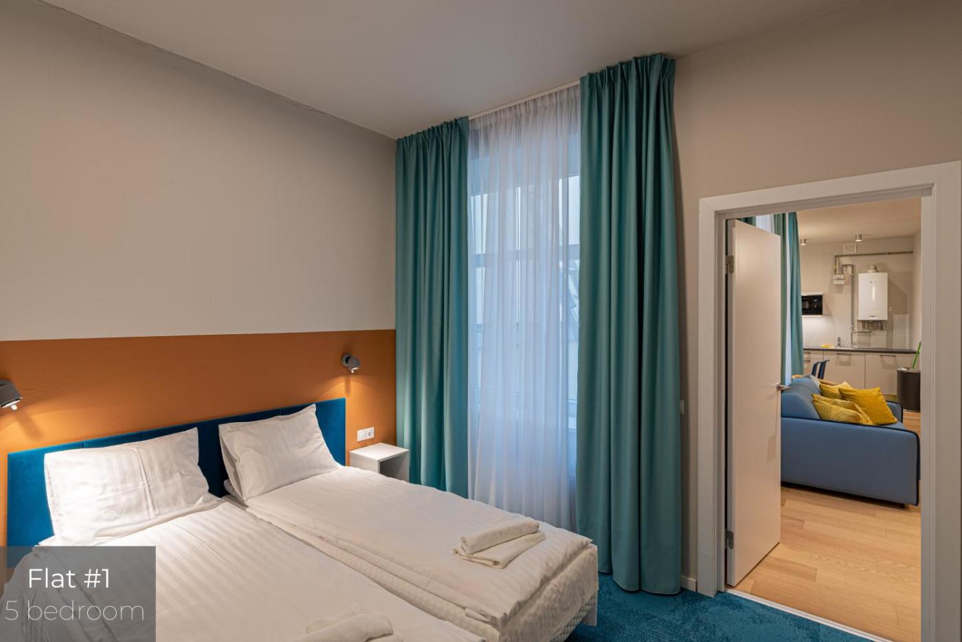 Five-Bedroom Apartment - Ground Floor. This spacious apartment consists of 1 living room, 5 separate bedrooms and 3 bathrooms with a shower and free toiletries. Guests can make meals in the kitchen that is equipped with a stovetop, a refrigerator, a dishwasher and kitchenware. This apartment is air-conditioned and features a seating area with a flat-screen TV, a washing machine, soundproof walls, a tea and coffee maker, as well as a dining area. The unit offers 12 beds.