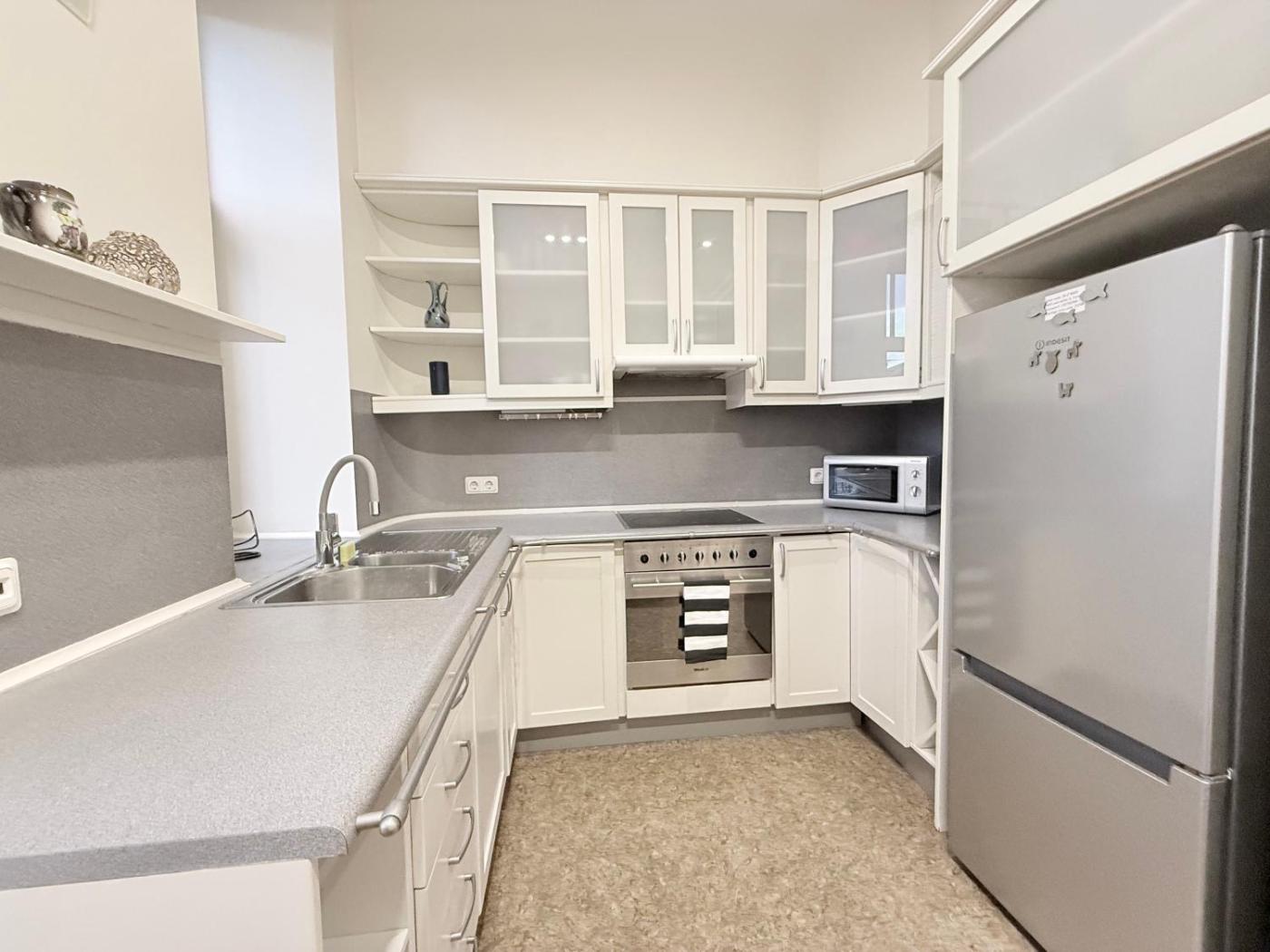 Apartment. This spacious apartment comes with 4 bedrooms, a kitchen and 2 bathrooms with a bath and a shower. Guests can make meals in the kitchen that features a stovetop, a refrigerator, kitchenware and an oven. Among the room amenities are a washing machine, a dining area and an electric kettle as well as city views. The unit has 4 beds.